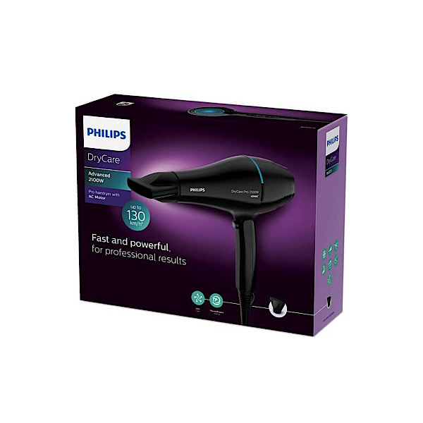 مشخصات فنی، یکی از مهم ترین مواردی است که باید حتما مورد توجه قرار بگیرد. برای خرید وسایل برقی شخصی از جمله سشوار، دانستن مشخصات فنی به انتخاب محصولی بهتر کمک می کند. سشوار مو فیلیپس مدل PHILIPS BHD272، موتوری قدرتمند با قدرت 2100 وات دارد. موتوری که در این سشوار به کار رفته، از نوع AC است. همچنین منبع ولتاژ آن 220 ولت است. سشوار مشکی رنگ فیلیپس، عملکرد فوق العاده ای در حالت دادن به موها و تثبیت حالت دارد. تکنولوژی های فوق العاده ای نیز در ساخت این سشوار، به کار رفته است. استفاده از تکنولوژی در محصولات و لوازم برقی، باعث افزایش محبوبیت محصول می شود. چرا که کار مصرف کننده را بسیار ساده می کند. برای مثال در همین مدل سشوار فیلیپس، تکنولوژی منحصر به فردی به نام ThermoProtect به کار رفته است. این تکنولوژی وظیفه دارد تا دما را به صورت خودکار کنترل کند. هنگامی که دما افزایش پیدا کند و سشوار بیش از حد داغ شود، این تکنولوژی به صورت اتوماتیک دما را کنترل کرده و از بروز حادثه یا خراب شدن سشوار، جلوگیری می کند. امروزه در سشوارهای جدید از جمله سشوار مو فیلیپس مدل BHD272، از فناوری تولید یون استفاده می شود. این فناوری کمک می کند تا موها سریع تر خشک شوند. همچنین بعد از خشک شدن وز نداشته باشند. استفاده از فناوری تولید یون در سشوار مو، مانع از شکستگی موها می شود. به دلیل همین مزیت های خوب این فناوری، بسیاری از افراد ترجیح می دهند، سشواری را خرید کنند که فناوری تولید یون داشته باشد. چرا که این فناوری با تولید یون، باعث شکسته شدن ذرات آب می شود. در نتیجه با کوچک شدن ذرات، عمل تبخیر سریع تر انجام می شود و موها سریع تر خشک می شود. در کنار این فناوری، سرعت فوق العاده و خوب سشوار کمک می کند تا در کمترین زمان ممکن، موها خشک شوند. این مدل سشوار، 2 سرعته بوده و می توان به دلخواه هر یک از سرعت ها را انتخاب کرد. یکی از قابلیت هایی که در سشوار مو فیلیپس مدل PHILIPS BHD272 وجود دارد، کنترل دماست. به این معنی که شما می توانید، دما را به صورت دلخواه با توجه به نوع مو تنظیم کنید. برای تنظیم دمای سشوار، 3 حالت یا تنظیم وجود دارد. برای کنترل سشوار و استفاده از آن، دکمه هایی تعبیه شده است. این دکمه ها به مصرف کننده کمک می کنند تا دما و سرعت را تنظیم کند. به غیر از این موارد، یک دکمه برای تنظیم باد سرد وجود دارد. وقتی که بخواهیم حالت موها را ثابت نگه داریم، از باد سرد استفاده می کنیم. علاوه بر دکمه باد سرد، سری متمرکز کننده هوا نیز در این سشوار دیده می شود که به حالت دادن موها کمک می کند. سشوار مو فیلیپس مدل BHD272 به فیلتر هوا مجهز است که قابلیت جدا شدن را نیز دارد. بعلاوه برای آویزان کردن سشوار نیز می توان از آویز آن استفاده کرد. در طراحی و ساخت وسایل برقی، باید به موارد ایمنی نیز توجه شود. سشوار فیلیپس به سیستم محافظ مجهز است. این سیستم مانع از افزایش بیش از حد دما می شود. چرا که افزایش بیش از حد دما می تواند باعث ایجاد حادثه شود. بدنه سشوار نیز از جنس پلاستیک است. سیم برق آن 180 سانتی متر طول دارد. وزن کل سشوار زیر 1 کیلو (0.7) است. سشوار فیلیپس، حرارت را به صورت یکنواخت توزیع می کند. بنابراین موها به آرامی حالت می گیرند.