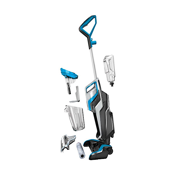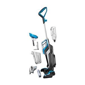 دستگاه بیسل 2223 از سری محصولات سری crosswave کمپانی بیسل امریکا بوده که 3 عملکرد فوق کاربردی را در زمینه نظافت به دوش میکشد. قابلیت جاروی آب و خاک و همچنین زمین شوی، مواردی است که bissell 2223e هر کدام را به نحو احسن و ساده ترین شکل اجرا میکند. توان این دستگاه نظافتی حرفه ای، درحالت حداکثری 560W میباشد که اگرچه نسبت به توان جاروبرقی، در اعداد قابل قیاس نیست، اما در رده جاروهای عصایی، دستگاهی پرتوان است که کار خود را به بهترین شکل انجام میدهد. در واقع تفاوت این دستگاه با جاروبرقی در این است که از بیسل 2223 تنها میتوان برای پاکسازی و طی کشیدن سطوح استفاده کرد. باتوجه به برس ها و حالت طراحی پارویی، این محصول میتواند بر روی سطوح مختلف مانند پارکت، سنگ، سرامیک، موکت، فرش، چوپ و لمینت به خوبی عمل کند. جارو بیسل کراس ویو از سری سفارش اروپا با پسوند E میباشد که نسبت به سری های Z کیفیت بسیار بهتری دارد. نام دیگر جارو بیسل مدل 2223 ادونس پرو است. تفاوت این مدل با دستگاه 1713 همین برند، چندان چشمگیر نیست و باتوجه به بررسی های انجام شده، این دستگاه یک رول نظافت اضافه دارد و مایع شستشوی آن 1 لیتر است که در مدل 1713 این مایع 236 میلی لیتر میباشد. از این رو 2223 سطح قیمت تقریبا بالاتری دارد و از لحاظ طراحی نیز میتوان گفت شباهت های بسیار زیادی دارند. بصورت کلی با در نظر گرفتن کیفیت و کارایی خروجی جارو بیسل ادونس پرو، میتوان به این نتیجه رسید که استفاده از این دستگاه برای پاکسازی های سنگین و طولانی مدت نیز گزینه ای ارزشمند است. برای اینکه دستگاه بتواند عملکرد استاندارد خود را انجام دهد، از 2 مخزن مجزا برای آب+مایع شوینده و مخزن زباله یا کثیف برخوردار است. در واقع سیستم عملکرد این محصول به این صورت میباشد که با ترکیب شوینده به سمت پارویی هدایت میشود. پس از آن باوجود سرعت بالای رول میکروفایبر و برس های تعبیه شده، سطح مورد نظر یک طی تمیز و باکیفیت میکشد. البته دستگاه در مرحله اول اشغال و گردوغبار را چه بصورت خشک و چه مایع، جذب مخزن کثیف میکند تا سطح براق و عاری از کثیفی، به منزل جلوه ای دیگر بخشد. یکی از نکات جالب جارو بیسل ادونس پرو، امکان شستشوی رول میکروفایبر، در جایگاه نگه داری خود دستگاه است. در واقع این قطعه مشکی رنگ پلاستیکی به گونه ای طراحی شده که امکان نظافت خود دستگاه درون آن فراهم میشود.