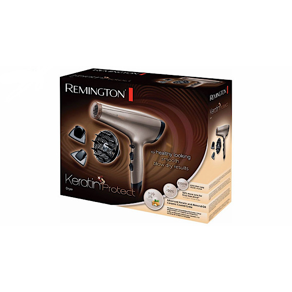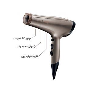 سشوار AC8002  رمینگتون دستگاهی با توان و قدرت کارکرد بالاست که برای استفاده ی خانگی و نیمه حرفه ای مناسب می باشد. موتور این دستگاه از مدل AC است و حداکثر قدرت 2200 ولت کار می کند. یکی از مزایای سشوار AC8002 رمینگتون فناوری تولید یون آن است. همچنین این سشوار قابلیت محافظت کراتین مو را دارد. این سشوار دارای فناوری تولید یون بوده که از وز شدن و مجعد شدن موها جلوگیری وبه حفظ و درخشندگی  مو کمک میکند. فناوری تولید یون در سشوار رمینگتون مدل AC8002  باعث می شود تا مو آسیب کمتری ببیند چون زمان خشک کردن کوتاه تر می شود و حرارت کمتری به مو می رسد به علاوه باعث می شود تا موها بعد از خشک شدن وز نشوند زیرا بار موها که مثبت است با بار منفی تولید شده توسط سشوار خنثی می شود. سشوار AC802 کمپانی رمینگتون قابلیت ایجاد باد سرد را هم دارد علاوه بر این می توانید دما هوای خروجی را در سه وضعیت و سرعت آن را در دو حالت تنظیم کنید. این دستگاه دارای یک سری دیفیوزر است که برای افراد دارای موهای فر بسیار مناسب است همچنین دو سری متمرکز کننده باد در این بسته بندی وجود دارد برای استایل دادن و حالت دادن به مو بسیار کاربردی است.