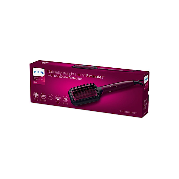 برس حرارتی مو فیلیپس مدل BHH730 قادر است تنها در مدت زمان 5 دقیقه فرایند حالت دهی و یا صاف کردن مو های شما را بدون برجای ماندن وز بر روی آن به انجام برساند. برخورداری این برس از پوشش سرامیکی کراتین سبب شده ضمن ایجاد حرکتی روان بر روی موها، از ایجاد وز بر روی موها جلوگیری شده و ظاهری صاف و براق به آنها ببخشد. محافظت از مو در برابر اعمال حرارت بیش از اندازه امری قابل توجه در فرایند رسیدگی روزانه به موها به شمار می آید. از همین رو این دستگاه با بهرهگیری از فناوری ThermoProtect با تنظیم خودکار دمای بهینه و متناسب برای حالت دهی موهای سر، از ایجاد دمای بیش از اندازه جلوگیری کرده و از سلامت موها در حین انجام فرایند محافظت میکند. طراحی دندانه های این برس در 3 ردیف با چینشی مناسب، مانع از گیر کردن و گره خوردن موها در آن شده و در عین حال از پوست سر نیز در برابر حرارت مراقبت میکند. سطح این برس دارای ابعاد قابل توجه 6 سانتی متر مربع بوده و از طراحی پارویی شکل بهره میبرد. داغ و آماده به کار شدن برس حرارتی مو فیلیپس در مدت زمان 60 ثانیه صورت می پذیرد. پس از آن با استفاده از امکان تنظیم دما قادر به شروع فرایند حالت دهی بر روی موهای خود خواهید بود. تنظیمات دمایی در 1 سطح و در دما 200 درجه سانتی گراد می باشد. آماده به کار بودن دستگاه از طریق چراغ نشانگر تعبیه شده بر روی بدنه آن قابل مشاهده است.